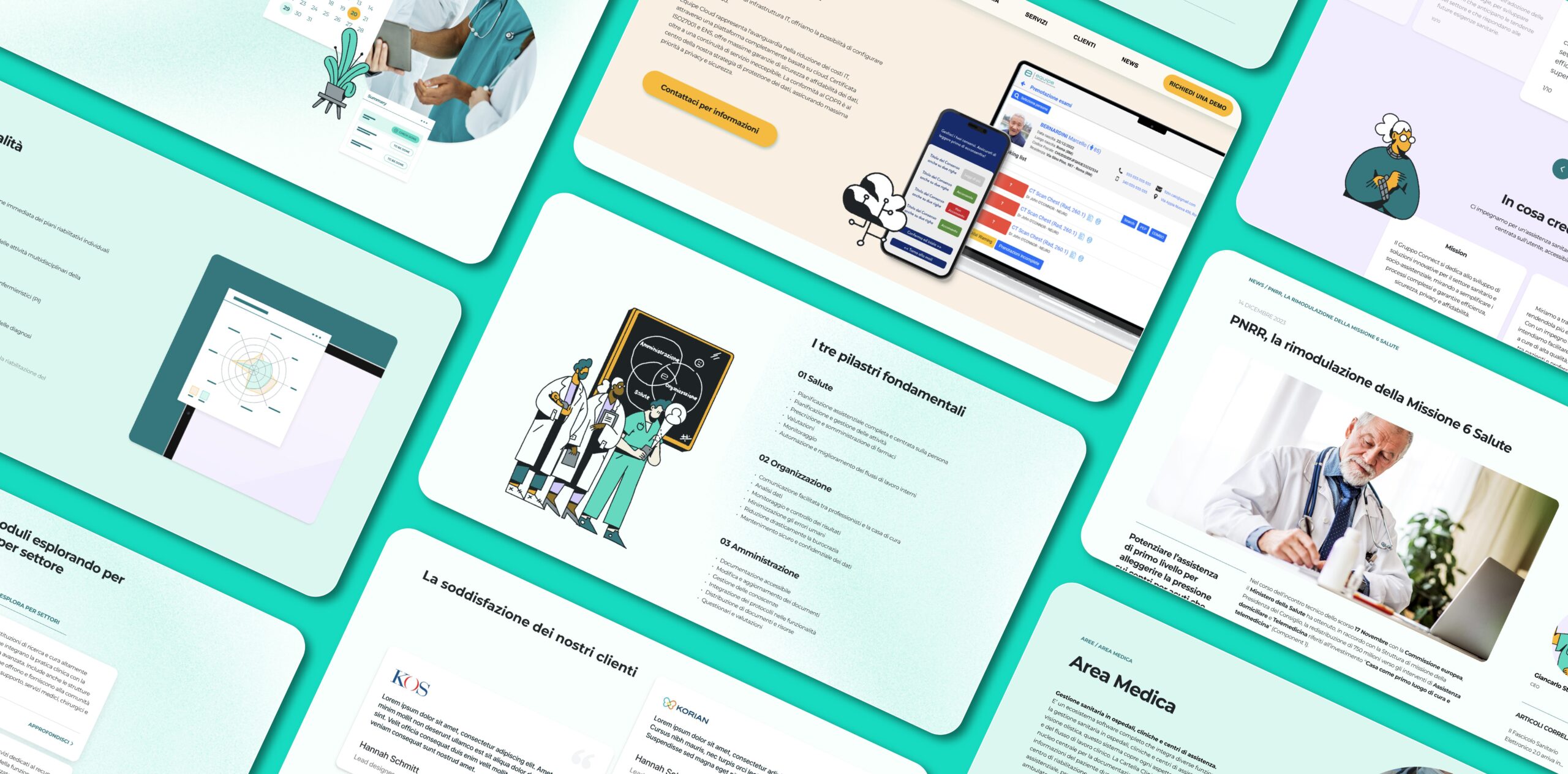 Le potenzialità della piattaforma rispondono alle esigenze di diversi target del settore sanitario. È essenziale comunicare all’utente la possibilità di integrare e far coesistere più funzionalità all’interno dello stesso strumento.