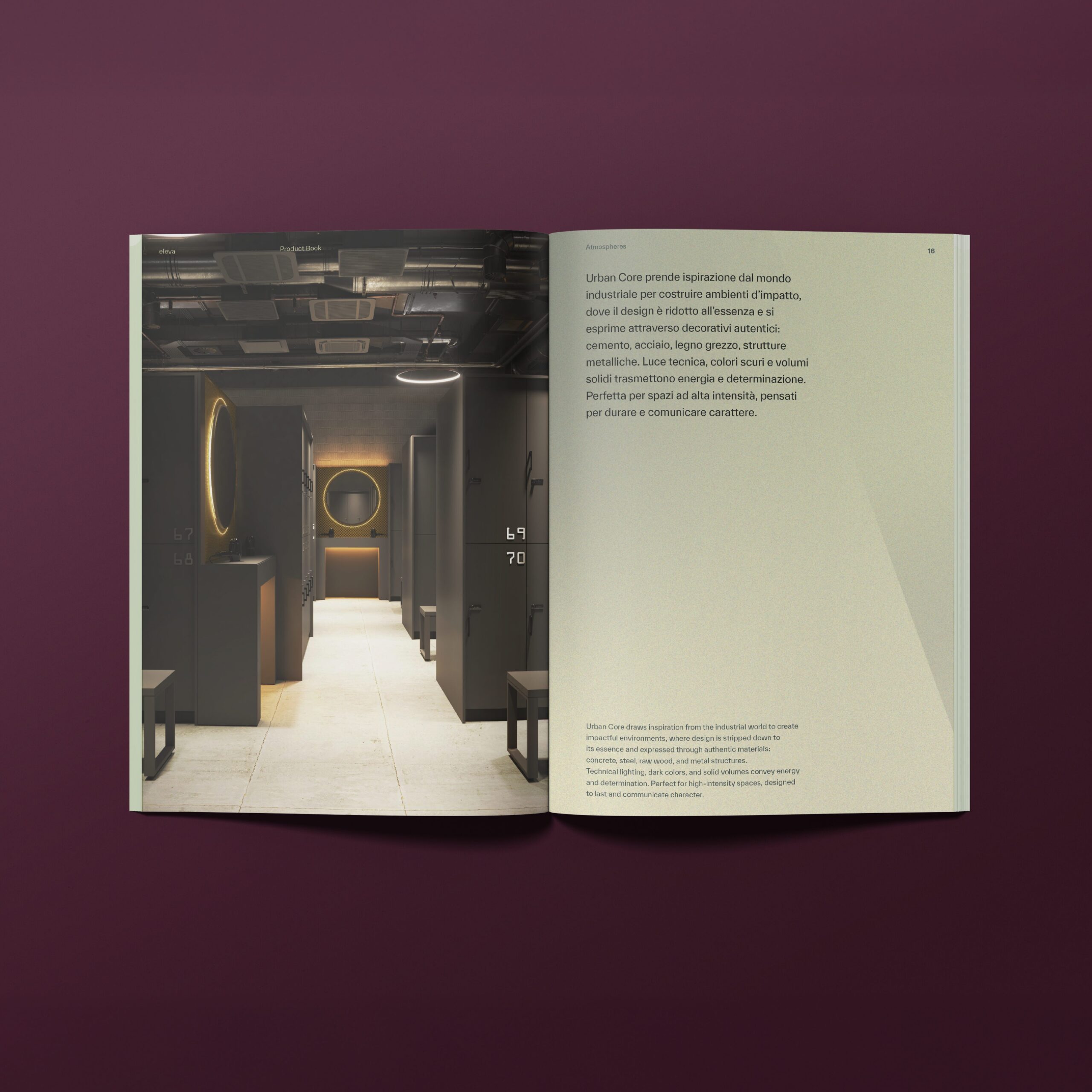 L’innovazione e la qualità di Eleva si riflettono nel suo catalogo attraverso la cura dei dettagli. Quattro ambientazioni uniche, illustrate con i render, raccontano atmosfere differente: industrial, natural, luxury e futuristic. La sezione tecnica approfondisce le caratteristiche dei prodotti, mentre la rilegatura e la scelta di carte pregiate esprimono l’eccellenza del brand. In chiusura, una sezione dedicata ai partner valorizza le soluzioni che arricchiscono l’offerta Eleva.
